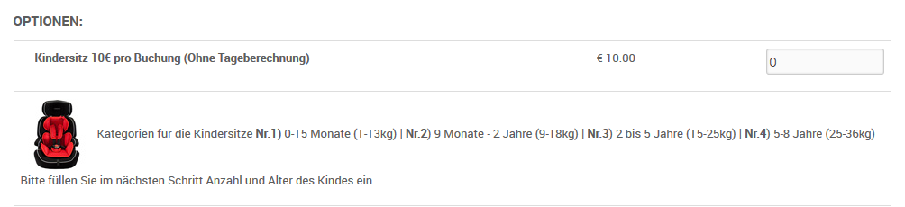 Kategorien für die Kindersitze Nr.1) 0-15 Monate (1-13kg) | Nr.2) 9 Monate - 2 Jahre (9-18kg) | Nr.3) 2 bis 5 Jahre (15-25kg) | Nr.4) 5-8 Jahre (25-36kg)